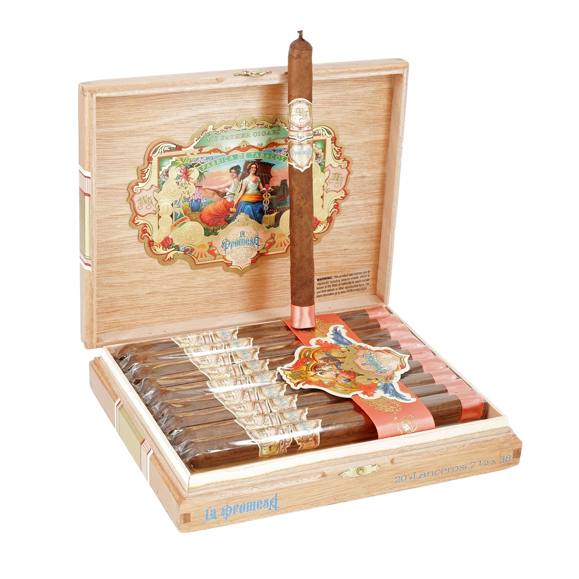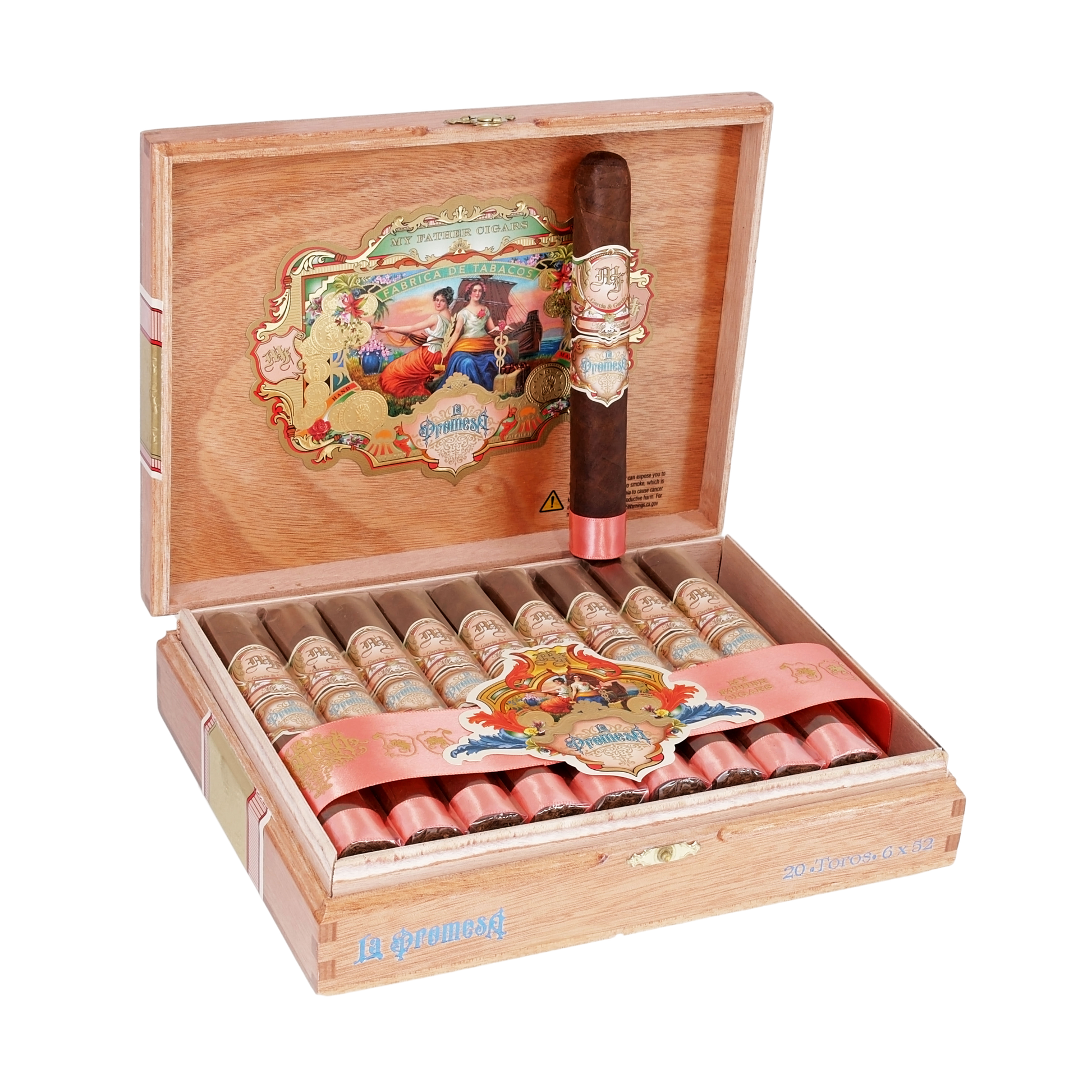 Discover the My Father La Promesa line, a selection of cigars crafted with the utmost care and tradition. Available in different formats and sizes, this collection allows you to enjoy the unique character of My Father La Promesa with the vitola that best suits your smoking style. Ideal for those who value quality, consistency, and a complete sensory experience. Estimated smoking time: between 45 and 70 minutes.